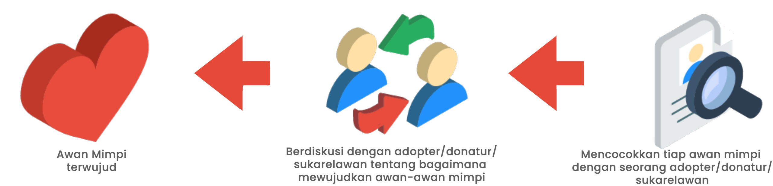 Kami menjalankan beragam strategi untuk pengumpulan dana dan pengadopsi mimpi, baik secara langsung lewat pameran Awan Mimpi maupun kegiatan bermusik.